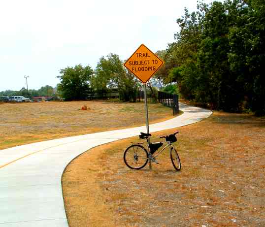 Here is the same spot now. Those "Trail Subject to Flooding" signs are everywhere, though I can't imagine a drop of water right now.