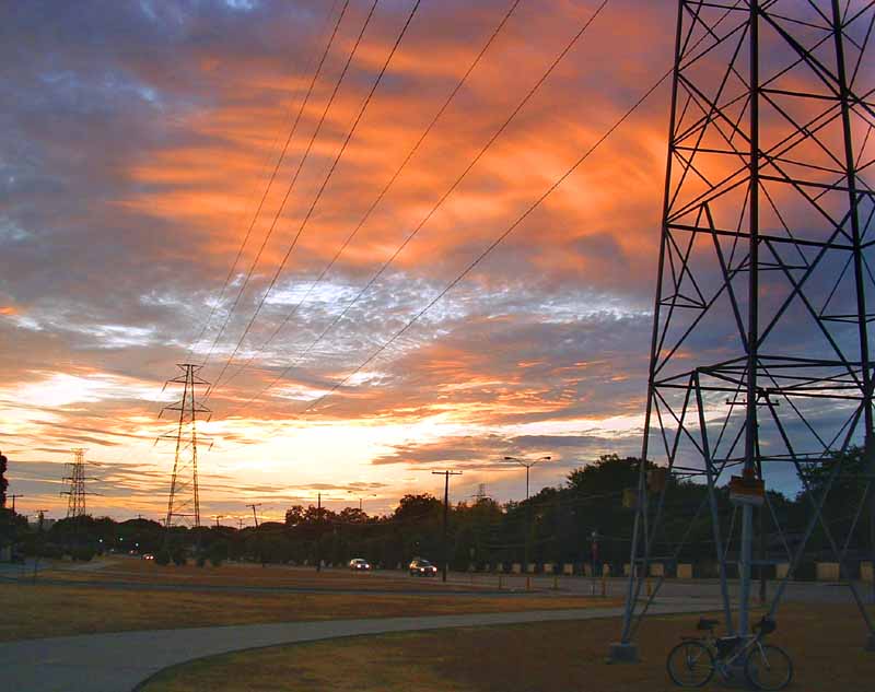 Like a lot of trails in Dallas, this one runs underneath a set of high-tension power distribution towers. This is good because it gives a lot of open free running space, perfect for a connector trail. The only problem is that it is pretty damn ugly. They do their best to spruce it up, with landscaped “nodes” and other plantings, but they can’t put in real trees (because of the overhead power lines) and it’s all pretty much lipstick on a pig.