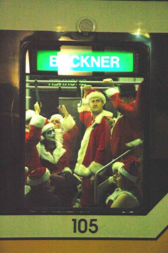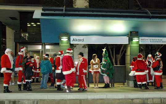 We made it back to the Akard DART station after about an hour of walking and then took a break. While we were there, the five hundred Santas – most of which had been drinking quite a bit – showed up and crammed aboard a Green Line Train – off to their next stop. They seemed happy and full of… well, they were full of Christmas Spirit – along with other stuff. The Santa thing looked like fun. I’ll have to check it out next year.