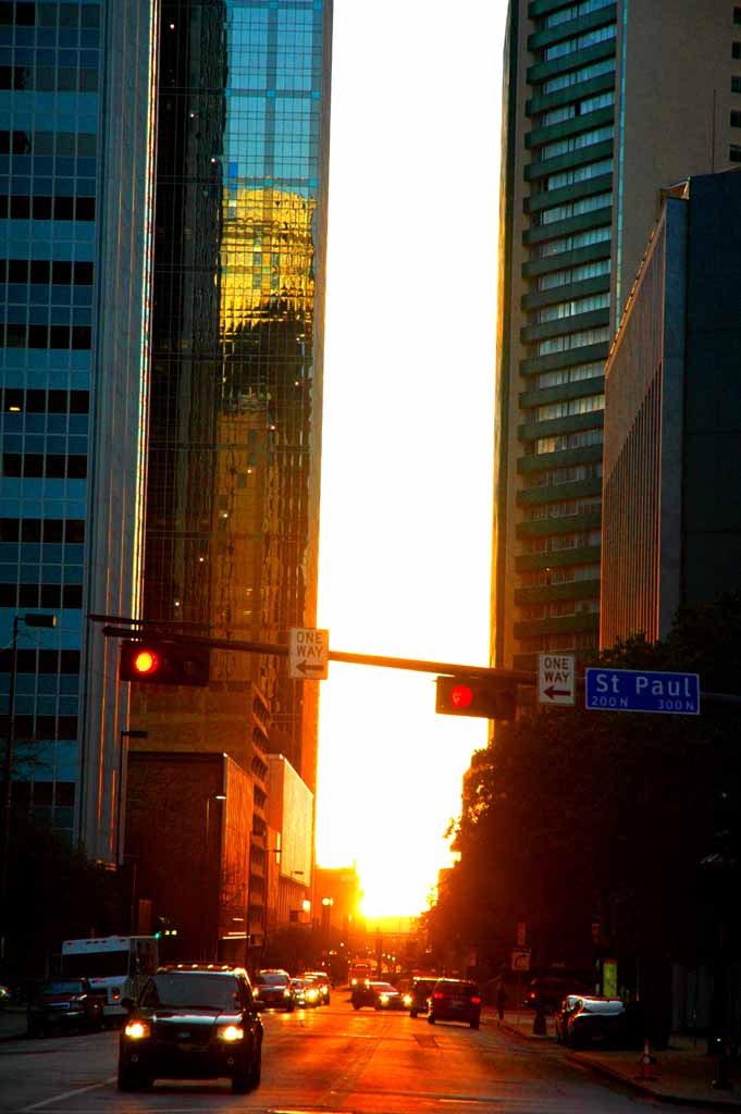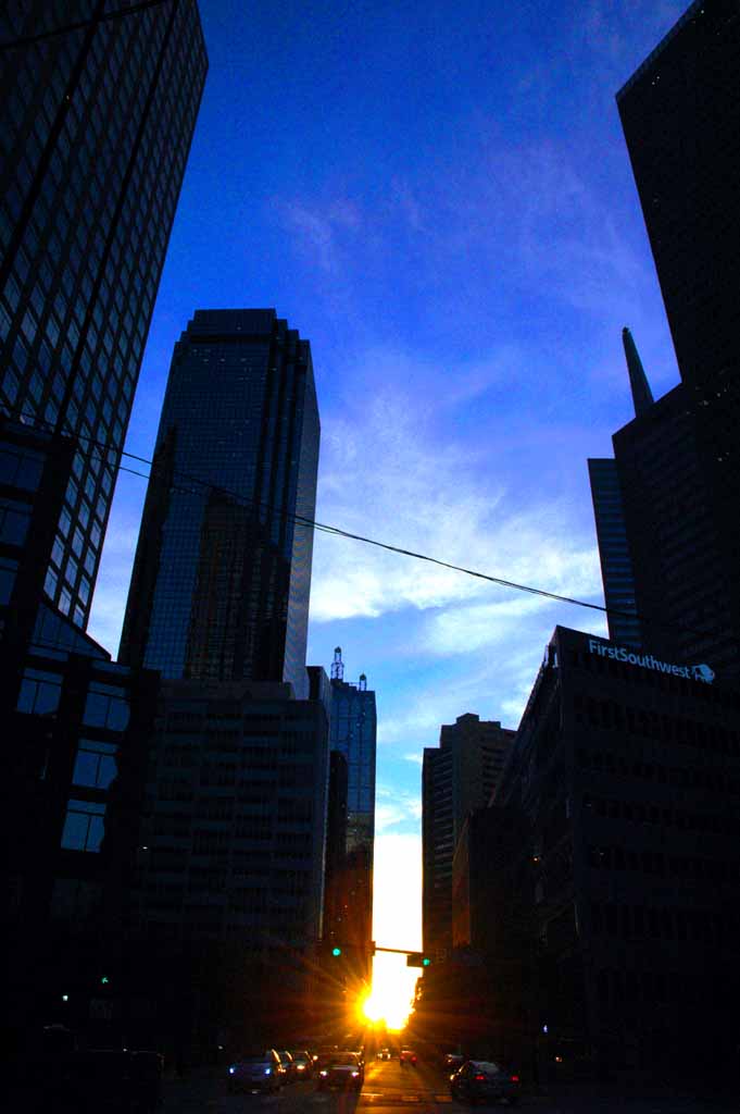 It would not be as spectacular as the very well-known Manhattanhenge, of course. As far as I know, I am the only person that recognizes this phenomenon in Dallas.