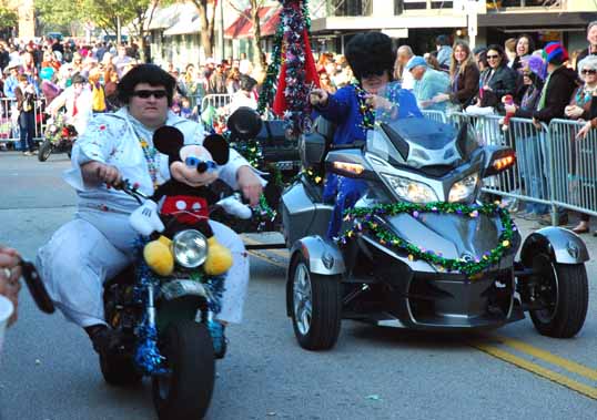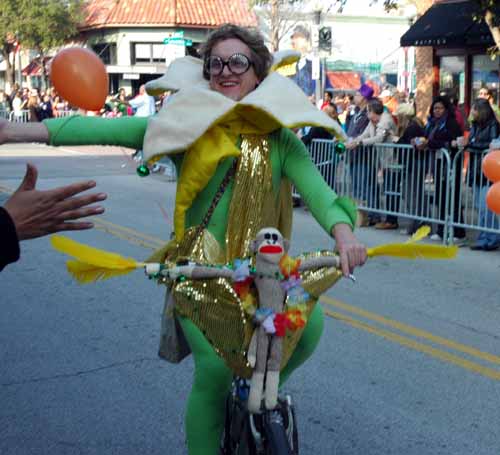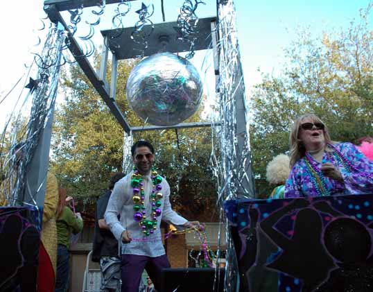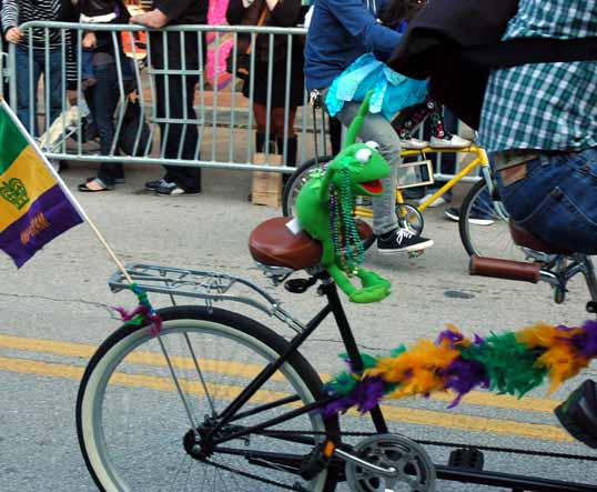 It was a blast. Though not up the the standards set in New Orleans by the big Krewes, it was still a fun time. Plus, it was a lot easier to get there, park, and find a place along the parade route (The logistics of going to Carnival in New Orleans is daunting). The parade had a nice neighborhood feel to it with a lot of schoolkids, bicycles, and dogs walking along. Still, it had a lot of floats too – most with a strong sense of humor.