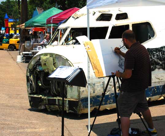 Along the street that ran through the center of the Cedars West Arts festival, out in front of the new fencing around OKON Metals, sat the chopped off cockpit of some unknown aircraft. I guess it was out there to show the variety of materials that a metal recycler can deal with – or maybe it was out there simply because it was way cool.