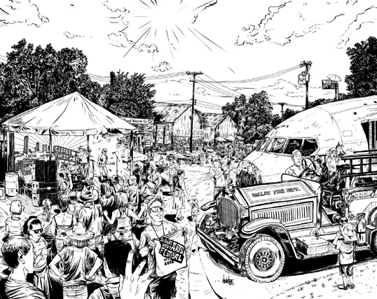 It threw me when I pulled up the address (2021 Rock Island) in Google Maps and took a look at the aerial photo. There were the swampy Trinity River Bottoms and a little stretch of road that ran through the most awful stretch of industrial wasteland you will see anywhere. It looked like the last place on earth you would hold an arts festival. So I began to read the history of the area and the reason behind the festival. They were throwing this shindig to show off the work they had done to spruce up their area and to demonstrate to the city at large how these types of businesses can contribute to the cultural life of the city.