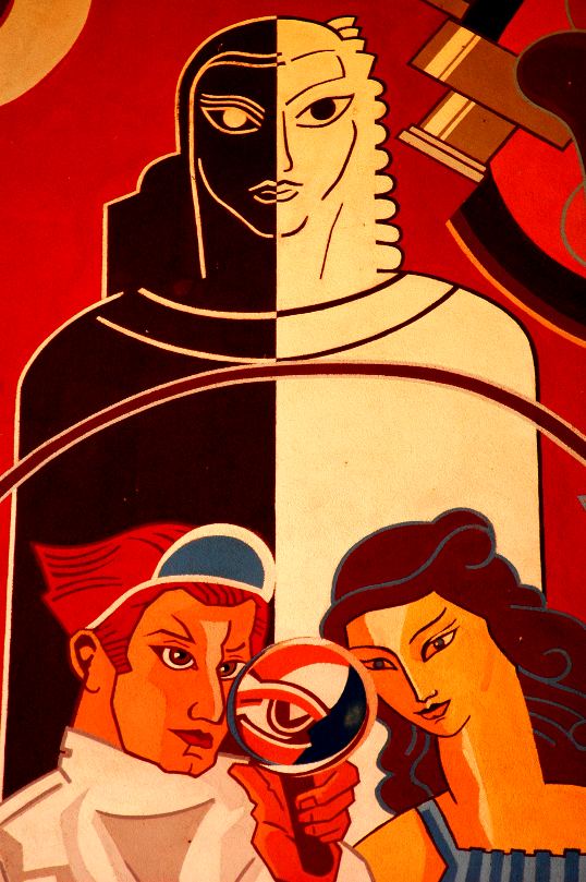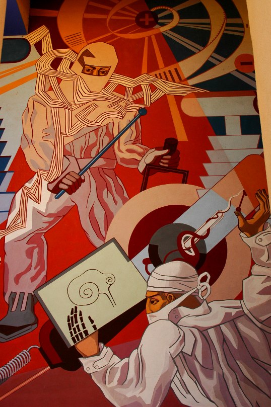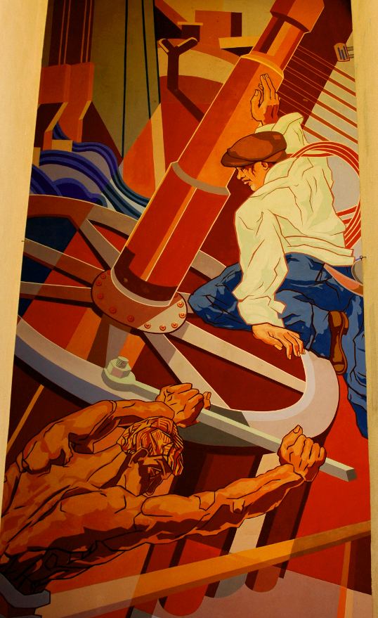 Every entry boasts a massive mural painted on the wall. They are done in a beautiful, powerful, art deco style. I think they are among the coolest things in the city.