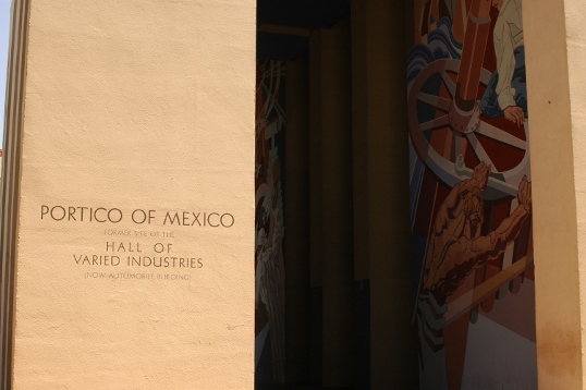 Along the Esplanade, in Dallas’ Fair Park, are six huge porticoes lining a massive pool… three on the north and three on the south. Each portico represents one of the flags that flew over the state. There is a huge female statue outside each representing each country… I’ll look at them another time. What I want to show you is what is inside each portico.