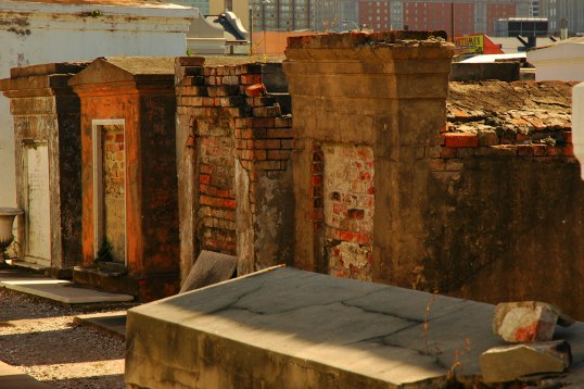 The Cemeteries of New Orleans are famous – when you visit you notice them right away on your drive away from the airport. Because of the high water table, burial in the city is above ground in crypts. If you tried to stick a coffin underground it would come bobbing up in the first hurricane and go hurtling down the street.