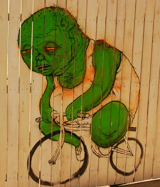 Bicycle Graffiti Posted on May 13, 2013 by Bill Chance Painted on a wooden fence in Denton, Texas This one had been defaced by someone that used white paint to add crude breasts. I photoshopped that out.You are welcome. This one had only been started. I posed my bicycle where the one in the image will be. It looks cool, I hope the artist finishes it. Share this: Click to share on X (Opens in new window) X Click to share on Facebook (Opens in new window) Facebook Click to email a link to a friend (Opens in new window) Email Click to share on LinkedIn (Opens in new window) LinkedIn Click to share on Reddit (Opens in new window) Reddit Like Loading...