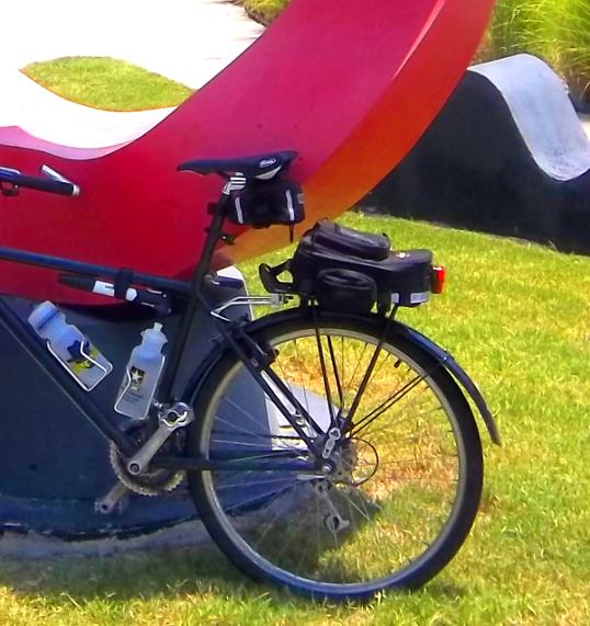 I didn’t look too hard and didn’t see a label or plaque. This is a public sculpture, though, so there is information on the internet. The sculpture is called Gateway, and, as I’ve said is by Hans Van de Bovenkamp. It’s painted aluminum (begining to fade a bit – might need a recoat) and is a variation of a theme of Bovenkamp – there is a bigger version in Oklahoma City.