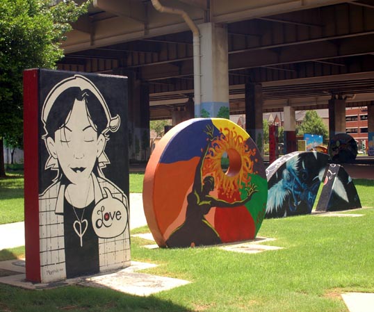 She walked along the sidewalk as the road curved away from the airport. The way was well lighted by the ring-shaped streetlamps suspended high above on metal poles. She felt herself sweating through her clothes but made good time walking along the sidewalk. After a bit the sidewalk split away from the road and became a separate, paved trail. Thelma wasn’t sure about following it, but the road crossed a dark, swampy-looking patch on a bridge that had no walkway, so she had no choice.
