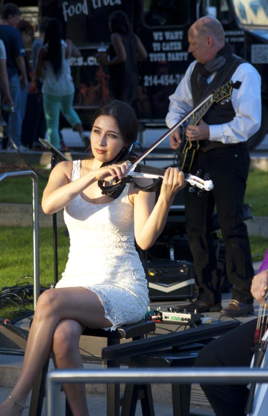 This week was the Dallas String Quartet (facebook). The weather was cool and beautiful, rare for North Texas. I hopped the DART train and made it down there right on time – bought dinner from a food truck and settled in. I knew nothing about the Dallas String Quartet – they are an eclectic electric ensemble. Amplified strings, a bass, a guitar, and a drum kit. They play original arrangements of modern, popular hits and are very, very good at it.