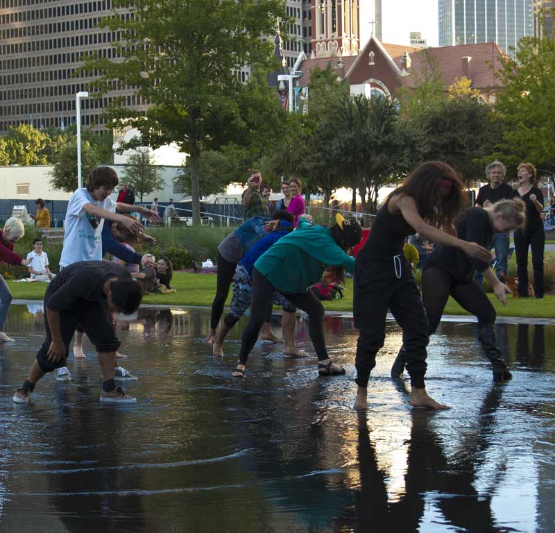 And then, to show how wrong I can be… I noticed a crowd of teenagers rapidly gathering on the reflecting pool. It was a dance class from (I assume) the Dallas High School for the Performing Arts right next door. They were on their way somewhere and took the opportunity to dance for all of us.
