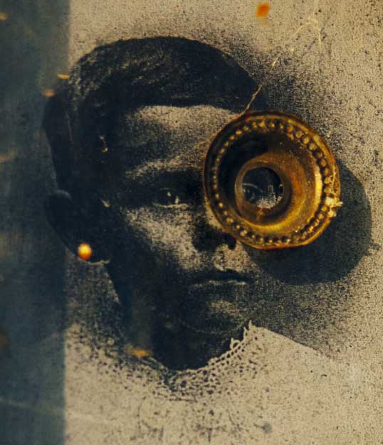 At the Carrollton station – elevated high in the air (cool view from up there) over where I suppose the old switching yard might have been, I noticed all these little windows cut into the concrete pillars supporting the roof structure. In each window was an old photograph combined with, or framed by, pieces of found metal. It made for a series of interesting and entertaining collages. The time spent waiting for the train was reduced by me dashing up and down, looking into the little windows at the parade of aged faces and arranged fragments of history.