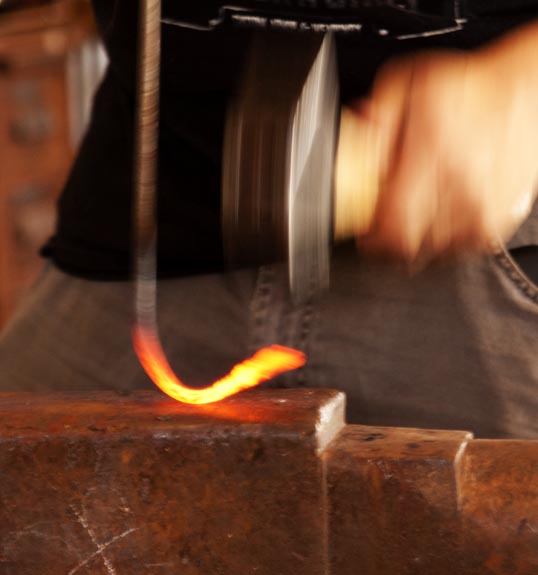 As I walked out of the Railroad Station I heard a series of loud metallic clangs. I turned toward the sound and there was a shower of orange sparks from a healthy flame sprouting up in the darkness of a metal shed. I recognized these as the telltale signs of a Blacksmith at work.
