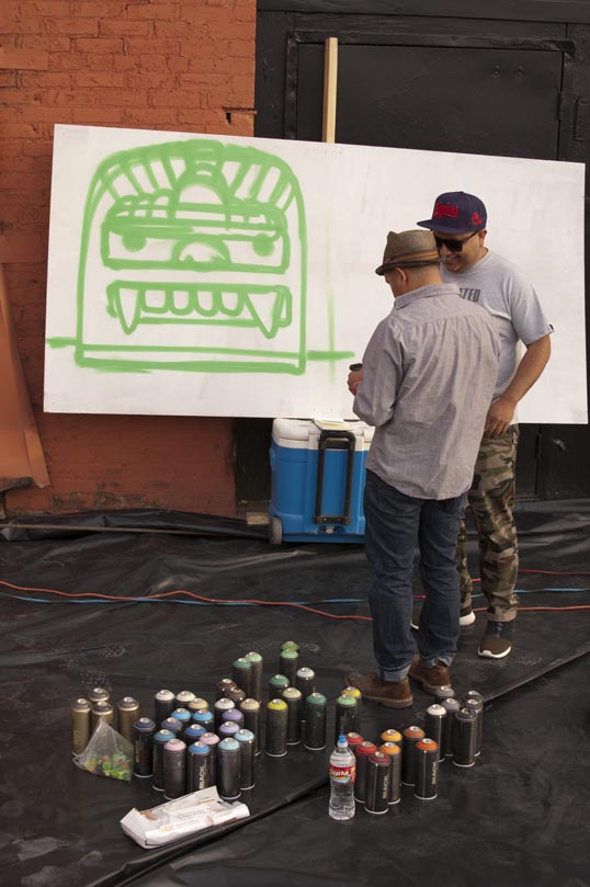 Throughout the weekend, 30 mural artists from across the city will paint 4×8 panels to be attached to a pop-up, walk-through tunnel structure, invoking memories of the TunnelVisions project on Good Latimer. Each artist has exactly 4 hours to paint. 6-8 artists will paint at a time. And it will be pressure-packed, high drama.