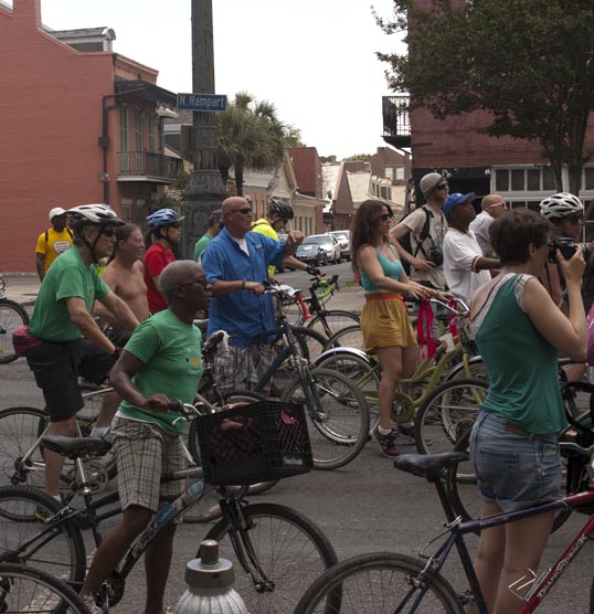 I’m not actually sure of the entire route we rode – I think it was Desaix Avenue to St. Bernard and Rampart Street. There we took a break in Louis Armstrong Park for water and hot dogs before we rode down Esplanade to Decatur and through the French Quarter. We wound through the Central Business District and then out Canal back to the start. The route was an easy eleven miles or so, but caught some of the most interesting parts of the city.