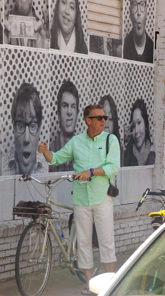 A while back I went on a fun, educational, and very cool bike ride that explored some murals in the Design District and West Dallas that had been commissioned by the Dallas Contemporary gallery. At the time, they had a new project going, Inside Out – The People’s Art Project, where they set up a series of photo booths and had people come by to get their photo done. These were then printed bigger than life size and put up at various locations around the city.