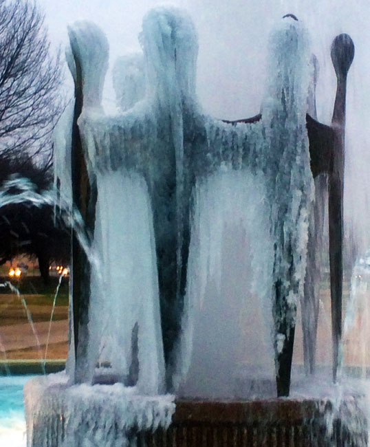 Today, I dropped some books off at the library after work, and noticed the fountain had a different look about it.