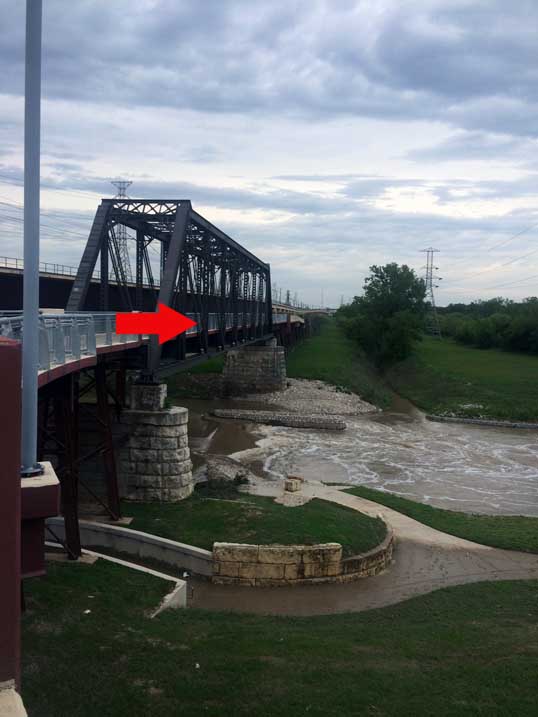 The USB is right off the Spring Creek Nature Trail. It is in the side of an old concrete railroad trestle just to the west of the DART train overhead – which is just west of Routh Creek Parkway between Glenville and Renner. If you are walking, you can park at Renner and US75 and follow the trail into the woods. When you reach the DART train overhead, turn and you can see the concrete trestle, right off the concrete trail. Walk down to it and the USB is glued to the North side, in the center.