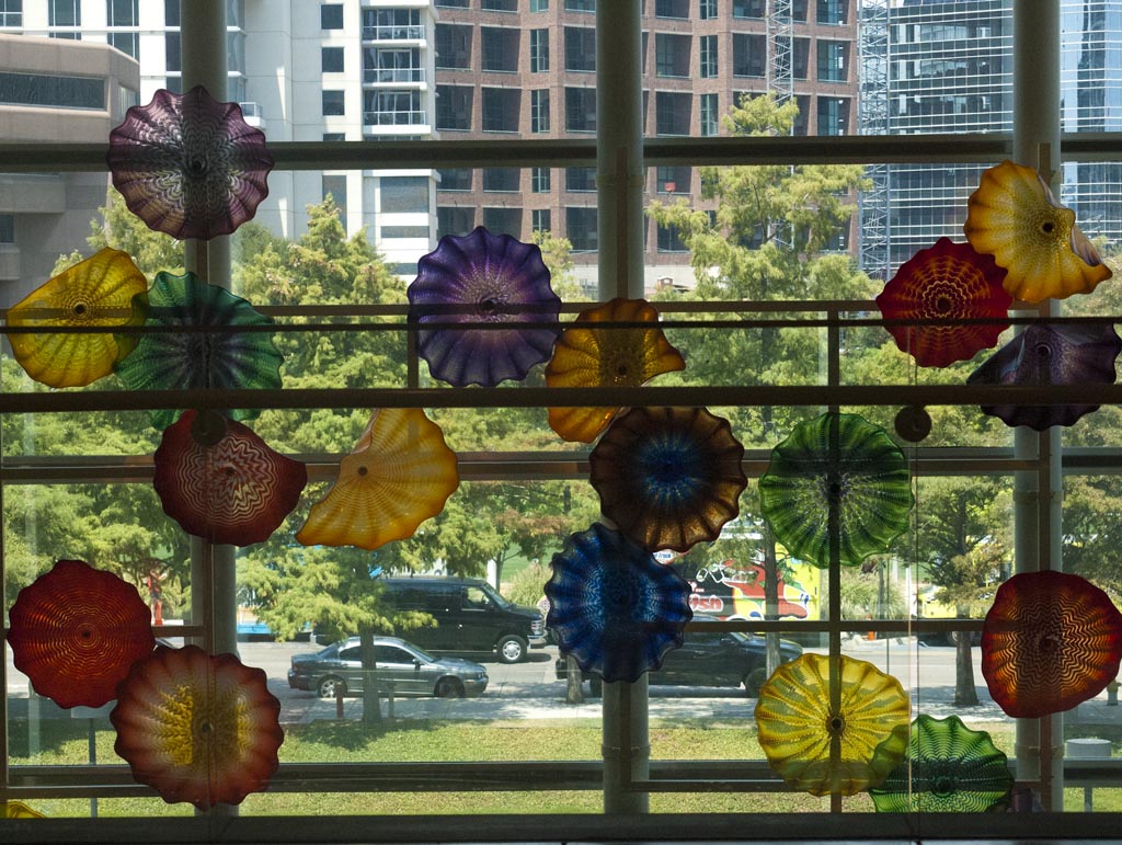 One of my favorite things is the Chihuly Glass window at the Dallas Museum of Art. I know I’ve posted photos of it before (here and here – for example) – but one of the things I like is how it changes with the light. Day and night. It’s always the same, but a little different.
