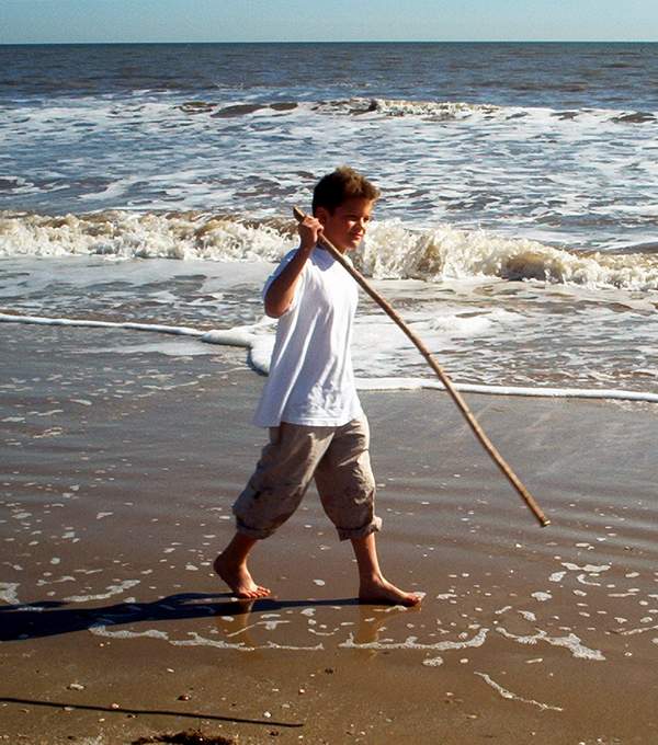 There is a rhythm of walking on the beach, in the wet sand between the surf and the loose part (in Texas it is generally allowed to drive on the beach, so, especially at night, you want to stay close to the surf), as the time and the miles go by all those old memories become telescoped in to the present day, the experience of being and moving along a border between two worlds.