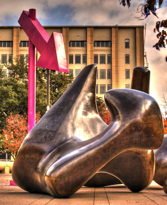 I’ve always loved that sculpture and have visited it for decades. One especially cool time was when Rachel Harrison added a temporary pink arrow in a sculpture known as Moore to the Point as part of the Nasher Xchange project.
