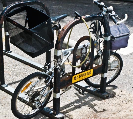 My folding bike locked up outside of the Avenue Pub in New Orleans