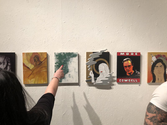 Kettle Art is a gallery in Deep Ellum and is known for its unflagging support of local artists. Every February those artists get a shot at returning the favor. The gallery distributes about two hundred identical nine by twelve inch boards to be converted into works of art. They go on sale at seven PM for fifty dollars apiece, and all of the proceeds go toward the gallery (they return the favor a week later with their For the Love of Artists event). The thing is that there are two hundred or so pieces, but three hundred or so folks show up and many buy several works – some up to ten. That’s why they call it a “competitive shopping event.” They open the doors at seven PM sharp and everyone rushes in.
