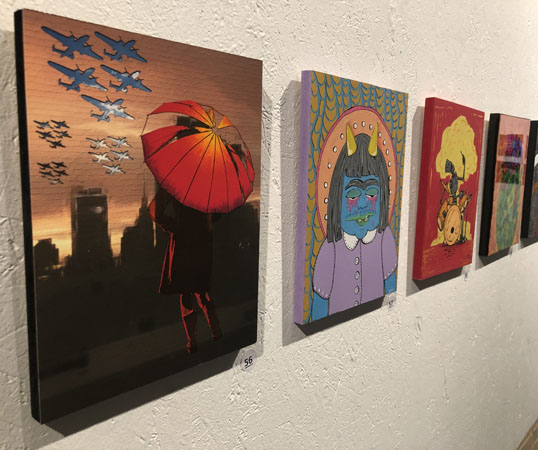 Some of the art at Kettle Arts “For the Love of Kettle” event. I really like the bomber/umbrella painting in the foreground and the robot drummer a little bit back.