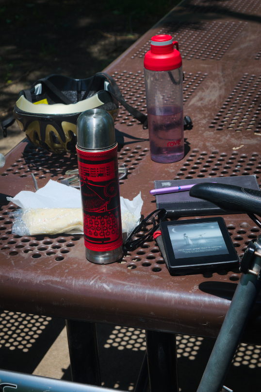 Yesterday, I wrote about riding my bike and drinking coffee. I really like my little thermos that I bought years ago at a gift shop called Plum (now sadly gone) off Magazine Street in New Orleans. It is small and has a cool leather wrap printed with graphics inspired by The Shining.