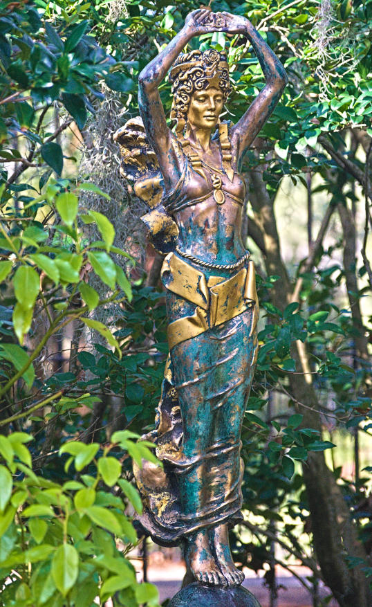 I found this attractive sculpture tucked away in a cool little alcove, framed by lush vegetation.
