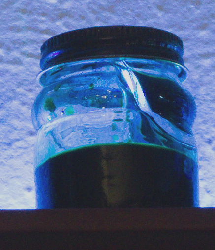 When it arrived I drilled some holes in the shelf and the wall and ran a USB cord up to the shelf. I glued the strip down behind the ink bottles (I tried behind and in front – behind looked better) and there is was. The strip does blink and flash and rotate colors and all that stuff (It comes with a little remote) but I usually leave it shining a more or less “white” light. I thought that the colors of the ink would show but they are way too opaque and appear black.