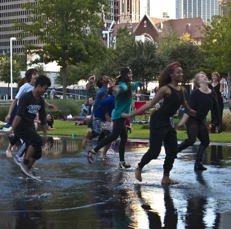 Young dancers on the reflecting pool at the Dallas String Quartet concert.