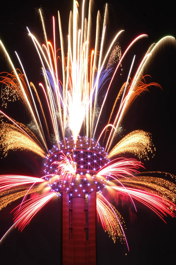 After the game was a fireworks display. I knew from years past that the Rangers always put on a good fireworks show, and this one didn’t disappoint. It was a long, loud, impressive display, with the explosions timed to go along with the music played in the ballpark. We watched from the upper level promenade, an open area around the top of the stadium. It was a perfect vantage point.