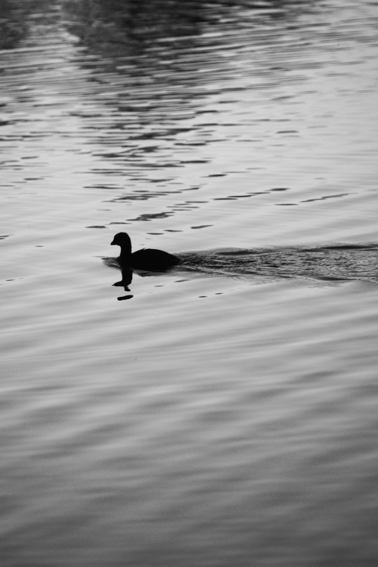 The ducks and geese that live there were getting pissed off at all this commotion, after convincing themselves that I didn’t have any stale bread to throw out. The circled and clucked and clacked and gave me the Evil Eye. A mother and five ducklings arced out of a hiding place behind a clump and swam off into a more protected part of the cove. Off to my left was a more open field lined with trees. A photographer was wandering around gazing up into the trees, looking for an artistic shot of the limbs, and eyeing me every now and then. I could tell he had no idea what I was up to. Past him, a couple had set up easels along the treeline of the thick bottomwoods, protected by a stretch of swampy ground. They were painting away, sometimes walking back and forth to see each other’s work. I wanted to work my way over to them and see what they were doing; but the wet ground kept me away. There was plenty of trash where I was anyway.