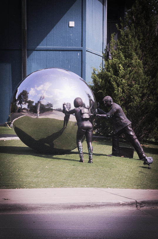 Virtual money flowing across the surface of the sculpture. Fountainhead Charles Long Northpark Center Dallas, Texas