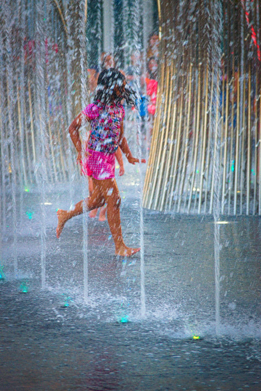 By day, the Fountain is an interactive play area for families and a relaxing respite in the heart of Dallas. It features a 5,000-square-foot splash pad, which can accommodate hundreds of children at a time.