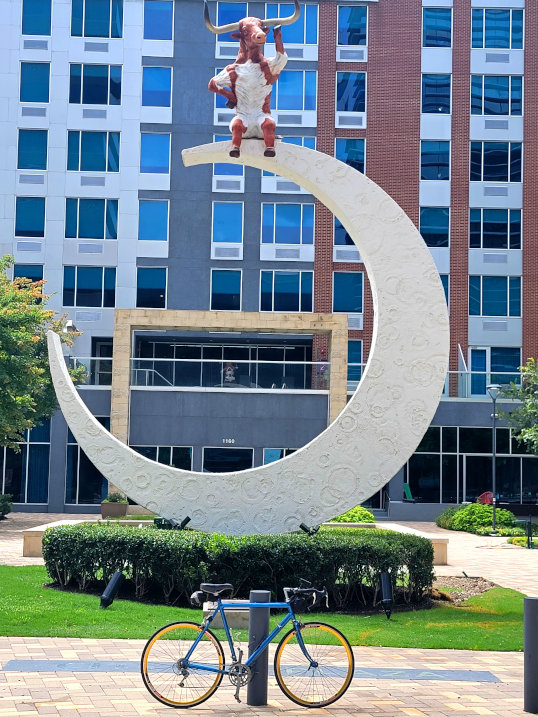 CityLine, Richardson Texas Sculpture – Over The Moon, Gordon Huether, 2016 Bicycle – Cannondale Touring Bike, 1987o
