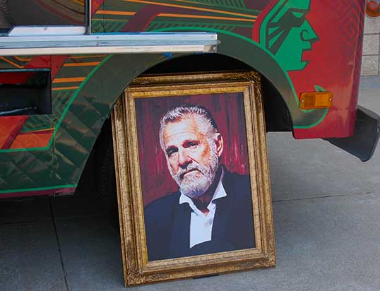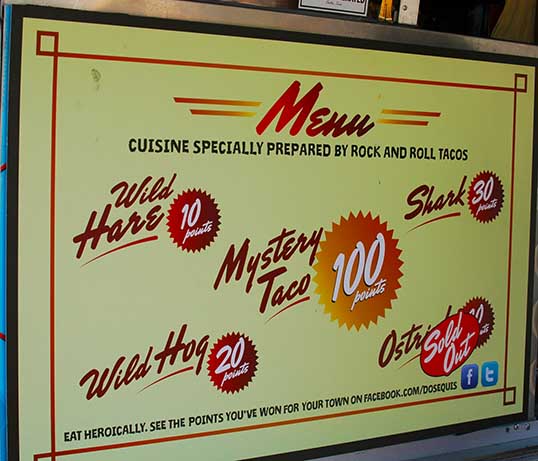 Back in the spring, I tracked down a Food Truck sponsored by Dos Equis. Billed as “The Most Interesting Taco in the World” – they had hired a well-known local truck, Rock and Roll Tacos, reskinned the outside, and sent it out to give away interesting tacos. They called it “Feast of the Brave.” I had shark and iguana tacos… and they were so good, it wasn’t even brave to eat them.