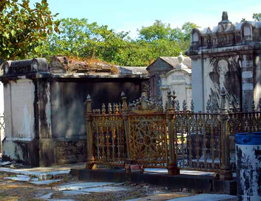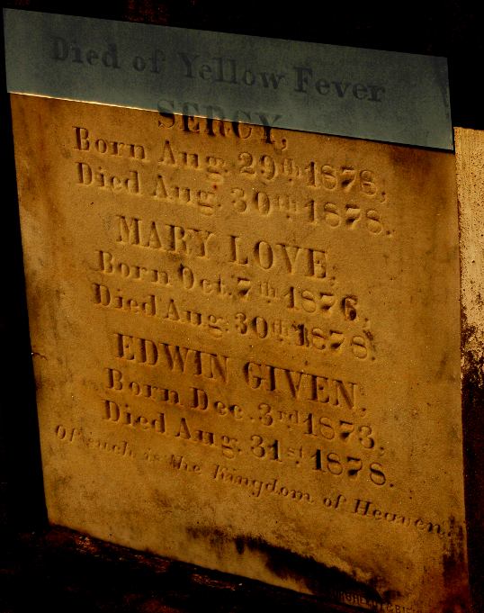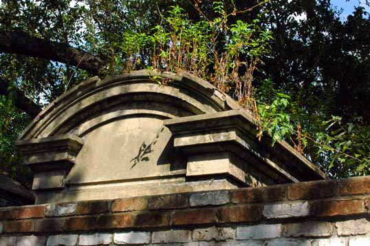 Everywhere in New Orleans you run into the ghosts of the yellow fever. This is a tomb from the Lafayette Cemetery #1 (not far from St. Vincent’s). I had to mess with the image, the top part was in deep shade. It reads: