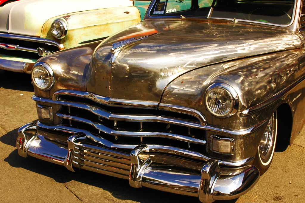 Steel rusts. It’s mostly iron anyway – and iron always desires oxygen, leaving the crumbling brown rust behind. Steel always rusts. When you see something this shiny… and it isn’t plated – look for the polishing marks. Somebody really went after it with a buffer – grinding away the oxidation, the spent, the ruined – leaving the fresh metal to gleam in the sun.