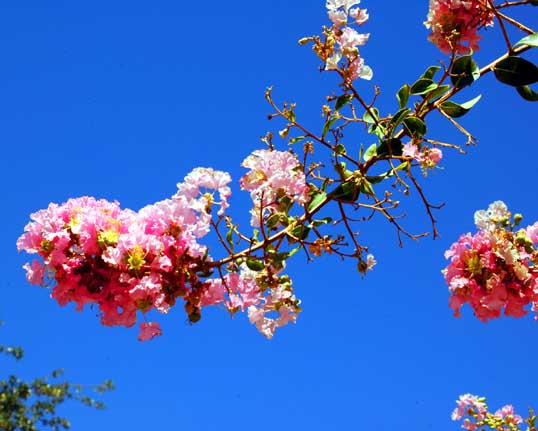 I never get tired of looking at the Crape Myrtle trees here in Texas. They are the Texas State Shrub (I’m sure you were wondering what the Texas State Shrub Was). They are about the only plant that blooms in the killer desert burning summer heat… and in the winter the bare branches make beautiful patterns (If you don’t do like so many folks do and cut the crap out of them – that bugs the hell out of me).