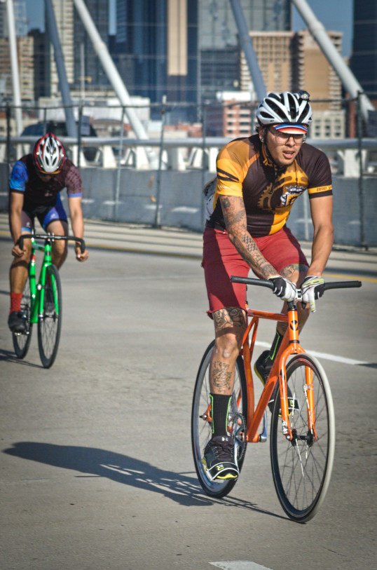 Taken yesterday at the AOT Just Ride Dallas Drag Race on the Margaret Hunt Hill Bridge.