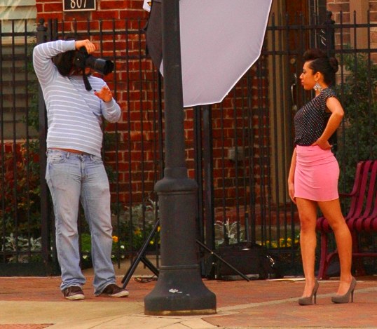 In a continuation of good omens, as I was driving down there, coming off of Good Latimer Freeway, I cut through a new urban condominium development and spotted someone doing a photo shoot on the sidewalk – either a fashion shoot or a set of senior pictures. There was a photographer, a model, a couple assistants off to the side, and a small collection of lights, diffusers, and reflectors.