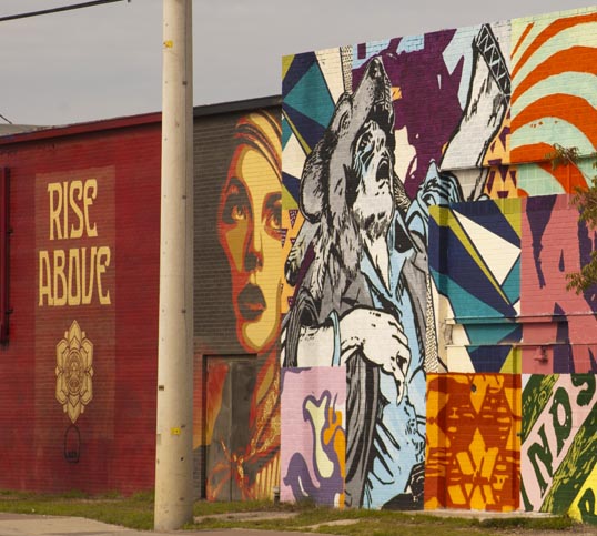 Murals by FAILE and Shepard Fairey, Trinity Groves, Dallas, Texas.