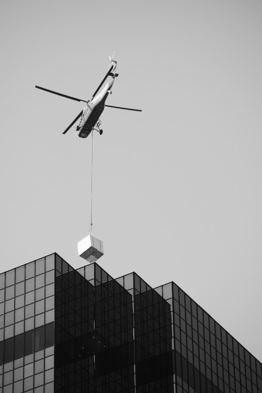 Sikorsky S-64 delivering a load to the top of the Chase Tower, Dallas, Texas
