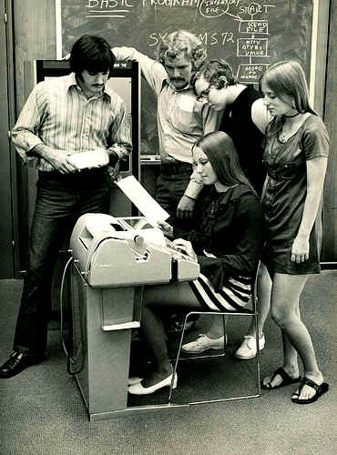 In college, I had to punch cards to produce input into a computer that took up an entire floor of the business school. I would hand my precious stack – chits of holed paper with one corner gone – through a window to some anointed guardian like it was the gate to the Emerald City. I would then stare at an empty vending machine for hours until my stack of printouts flopped down into a numbered wooden bin.