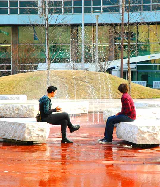 Down at the other end of the park there is a nice little fountain and some rocks to sit on. A nice place for a conversation – maybe the water will cool it off a bit in the summer.