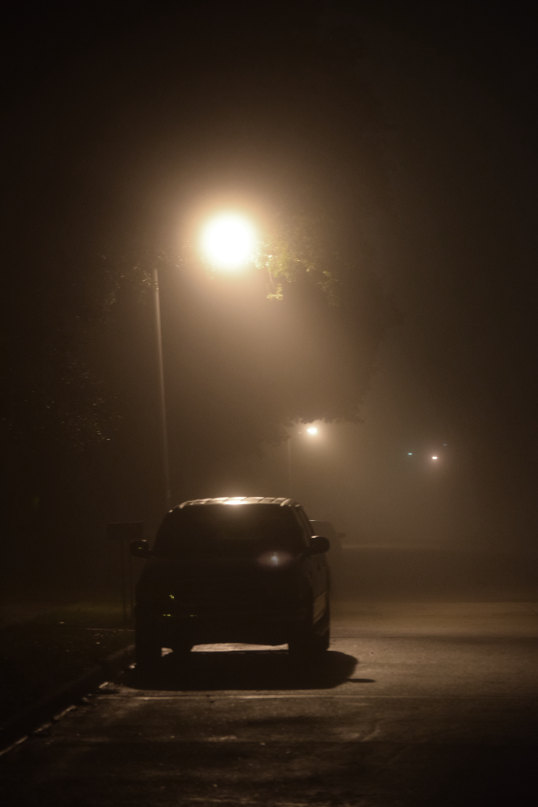 So I found myself on the trail that runs behind my house on up to Huffhines Park, with its lakes shining in the full moonlight. I veered to the right, went around the softball diamonds, and back to the lakes. As I entered the parking lot, I saw movement.