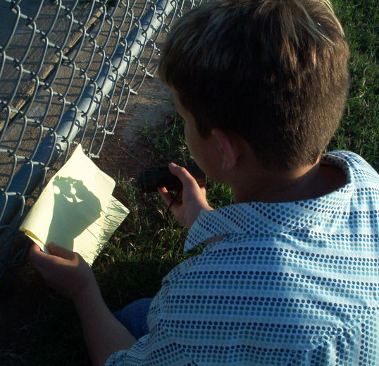 I was moving files around on my computer, looking at old photos in the process, and decided to take a look at a couple folders that were right about twenty years old. I found one of Lee (he just turned 30 – so he would have been ten at the time) projecting the image of a solar eclipse onto some paper at a baseball game. A quick google search and I found the eclipse happened on June 10, 2002 (only an annular eclipse – not a total).