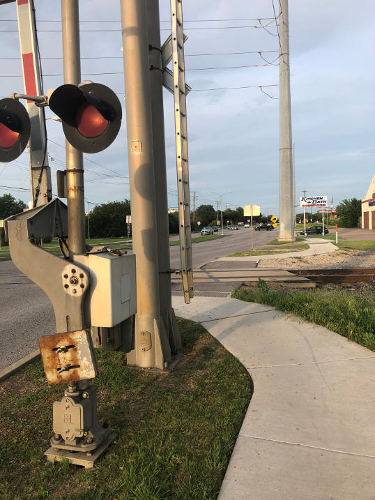 But I also mentioned how dangerous some of the railroad crossings are. For example, at Arapaho (a very busy street that is necessary for me to get to the library and a few other spots) I took this photo:
